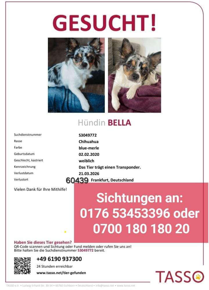 Hund Bella wird in Frankfurt am Main vermisst!