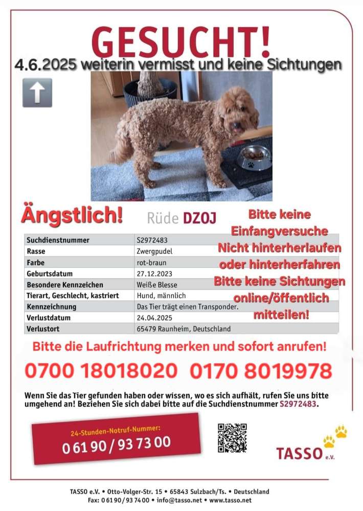 🚨Zwergpudel DZOJ vermisst in 65479 Raunheim, seit 24.4.2025 - 20 Uhr - Er ist erst 2 Tage da und ortsfremd sowie ängstlich! Bitte keine Fangversuche, nur Sichtungen melden an: