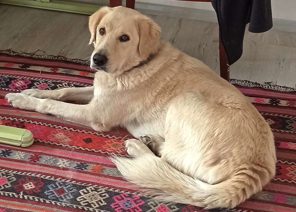 Ein schmaler ca. 10. cm langer grade Schwarzer bzw. dunkler Fleck ( aus der Ferne schwer sichtbar) in der Innenseite des hinteren rechten Beines vorhanden. Es ist eine alte Wunde vom Autounfall.