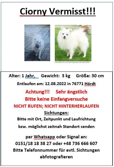 Hund Ciorny wird in Hördt vermisst!