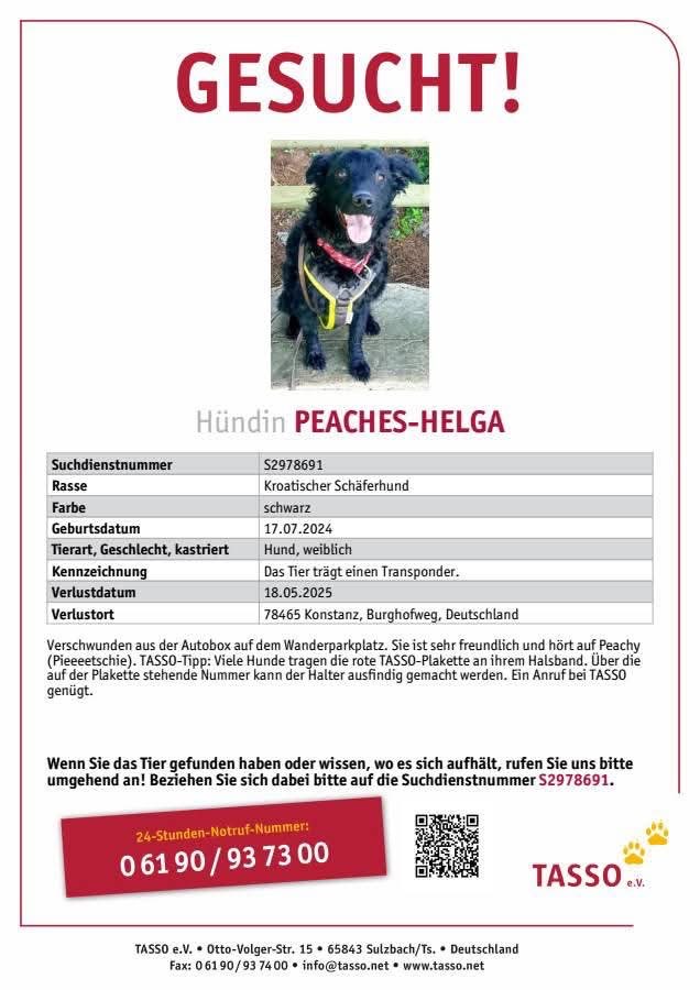 Hund Peaches wird in Konstanz vermisst!