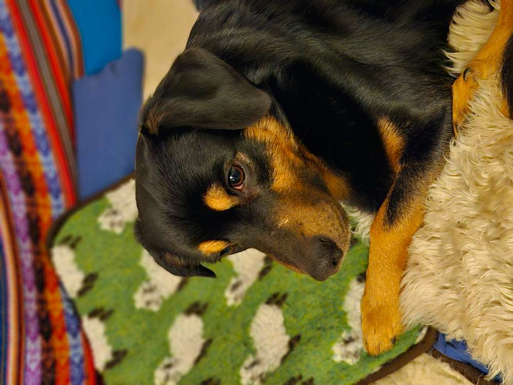 Aiko ist sehr zutraulich und hört auch gut auf Name und Pfiff. Er ist freundlich und hat auch noch nie jemanden gebissen.