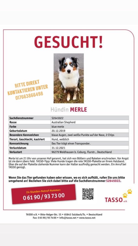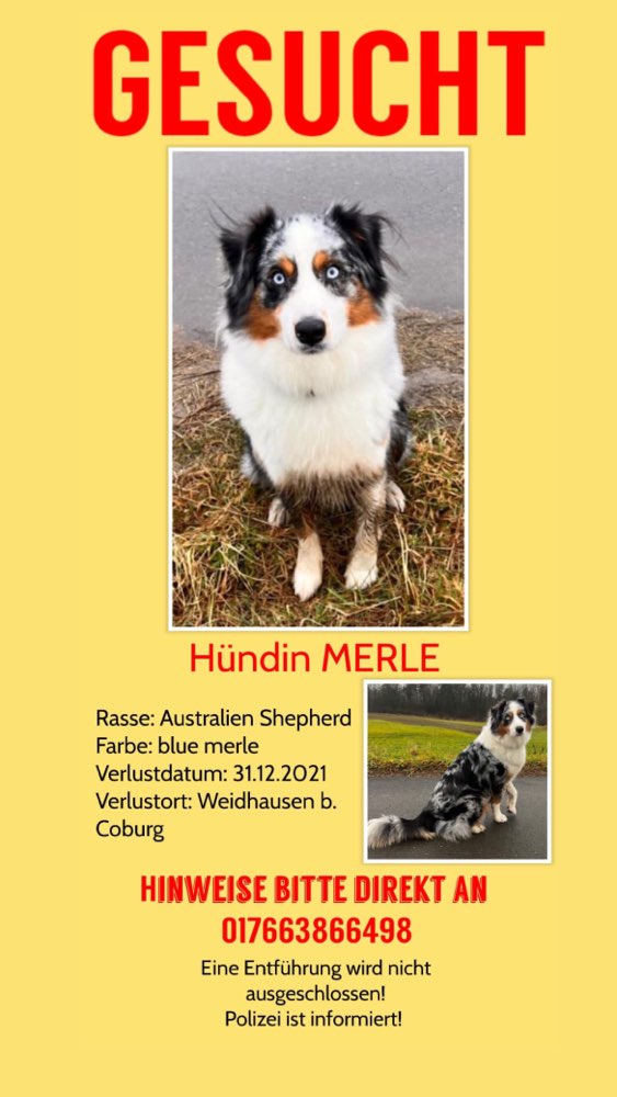 Hund Merle wird in Weidhausen b.Coburg vermisst!