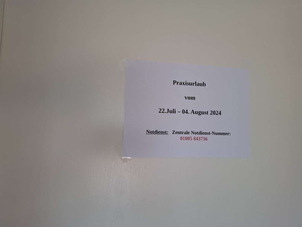 Aufgrund von Urlaub ist die Praxis vom 24.07.23 bis 6.08.23 geschlossen