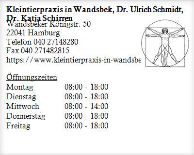 Das erste Mal hatten meine Eltern Kontakt zu Dr. Schmidt, als unser Neufi Fiete einen Kreuzbandriss hatte. Die OP verlief sehr gut. Wie leider so oft, war etwa 1 Jahr später auch das andere Bein betroffen. Auch diese OP verlief wieder sehr gut und unser Fiete konnte wieder normal laufen. Letztes Jahr hatte auch mein Hucky nach extremer Toberei einen Kreuzbandriss. Ich bin mit ihm auch zu Dr. Schmidt gegangen. Wir bekamen schnell die Diagnose und 1 Woche später wurde operiert. Da man in der Praxis wegen Corona sehr vorsichtig war, durfte ich nicht bei Hucky sein als er in Narkose gelegt wurde. Die Tierarzthelferinnen waren alle sehr nett und haben Hucky liebevoll behandelt. Ich sollte für Hucky noch Medikamente mitbekommen und da lief es etwas chaotisch ab. Dr. Schmidt selbst macht auf mich einen eher distanzierten Eindruck. Fachlich finde ich ihn aber sehr gut. Hucky hatte zum Glück keine Komplikationen und konnte nach 3 Monaten Schonung wieder normal laufen.