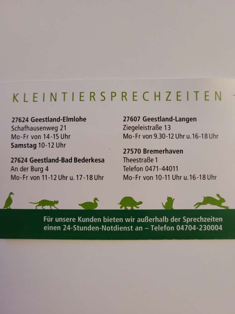 Der Dr.Nagelfeld hat vorerst einen super Eindruck auf mich gemacht. Er hat anders, als andere Tierärzte in Bremerhaven und umzu, sich viele Gedanken gemacht, was mein Rüde haben könnte. Denn ich war bei sehr vielen Tierärzten, weil keiner wirklich diagnostizieren konnte, was er hat. Ich war wirklich länger bei Nagelfeld. Weshalb ich nur 2 Pfoten vergebe: In einem Ultraschall, hat er die Leber mit einen Tumor verwechselt. Was meiner Meinung nach, ein großer Unterschied ist. Nun sagte er mir mein Hund hätte einen Tumor und würde nur noch paar Monate leben. Geschockt und total aufgelöst ging es direkt zur Tierklinik nach Bremen, wo ich viel früher hätte hingehen sollen. Raus kam das es garkein Tumor ist sondern die Leber. Und mein Hund einen Lebershunt hat. Welcher, auch nichtmehr zu operieren war. Da die Leber inzwischen zu klein war. Dies war in der anfangszeit von Corona, weshalb ich oft draussen vor der Klinik warten musste. Genauso wie weitere Tierhalter. Die mir mitunter viele unschöne Erfahrungen erzählt haben, welche sie bei Nagelfeld gemacht haben.