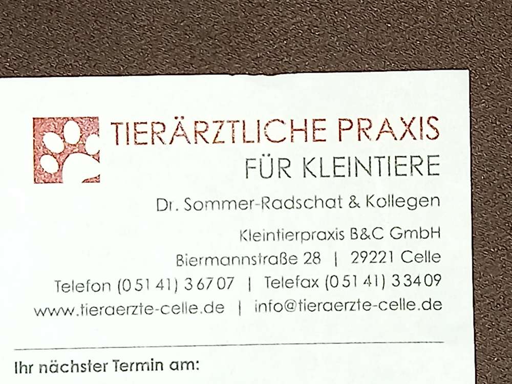 Ich bin schon seit Jahren dort und mit dem Team sehr zufrieden, sie sind alle sehr nett. Mit meinen Hunden bin ich am liebsten bei Frau Dr. Sommer-Radschat und Herrn Dr. Radschat.