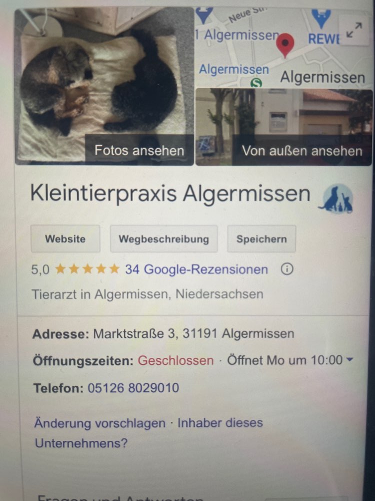 Die Praxis hat seit einiger Zeit Fr. Dr. Silke Block übernommen. Eine sehr nette und kompetente Tierärztin mit viel Herz für ihre Patienten. Und die Preise sind auch sehr sehr gut 👍🏼