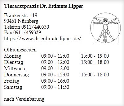Sehr liebe Tierärztin, die sich Zeit nimmt und gibt. Mein Hund ist sehr ängstlich und sie geht sehr liebevoll mit ihm um. Ich fühle mich auch gut beraten. Da mein Hund auch bei fremden Hunden in Angst gerät, wird, wann immer es geht, ein Termin möglich gemacht bei dem keine anderen Hunde vor Ort sind. Das finde ich sensationell! Fühle mich sehr wohl bei ihr und ihrem Team.
