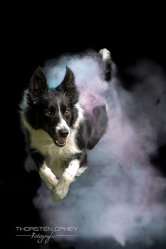 Voraussetzungen für dieses Shooting Dein Hund sollte - springen können - Platz und Bleib beherrschen (weil sonst das Pulver vorher wegfliegt) - nach dem Shooting gebürstet/geduscht werden.